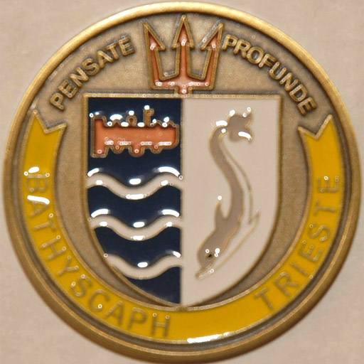 Right: 1960 World Record Dive commemorative medal / "challenge coin."