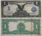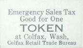 Left: 1899 "Black Eagle" $1 Silver Certificate. Right: Emergency sales tax token, Colfax, WA. Issued May 1935.