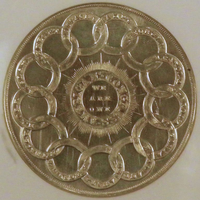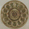 Center: "Divine Homo" man and woman art medal.