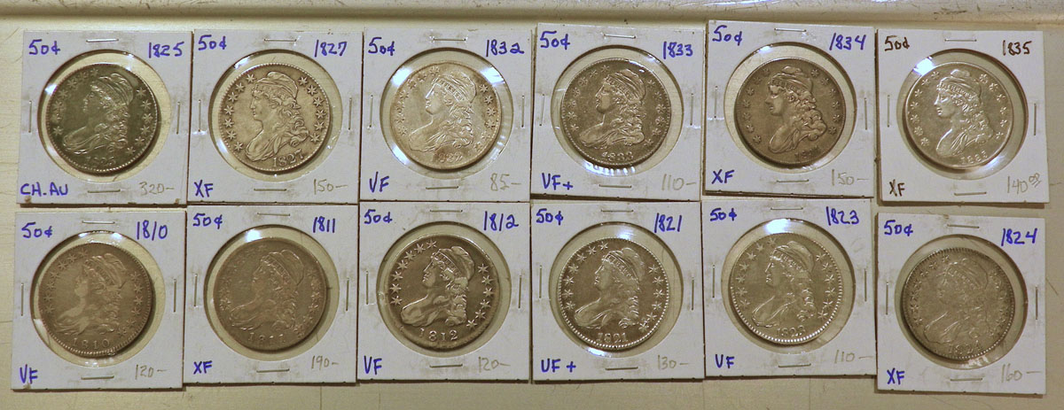 Top: Group of 12 U.S. "Bust" type half dollars.