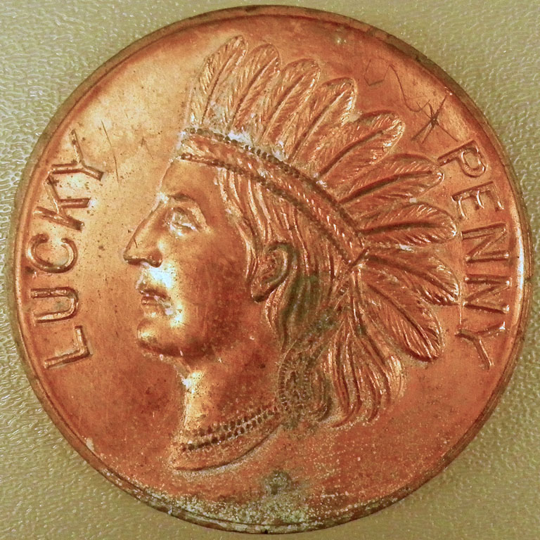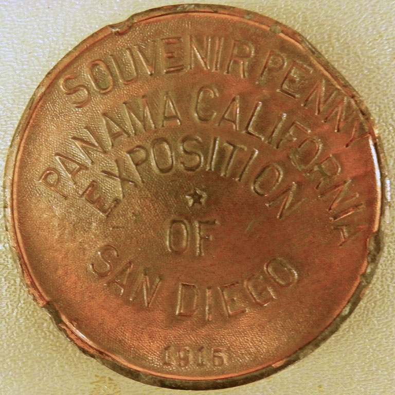 Lucky or Souvenir "Pennies" of various designs including 1915 Panama-California Expo and Mt. Rainier.
