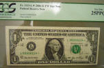 Left: 2006 $1 Federal Reserve Note with low serial number.