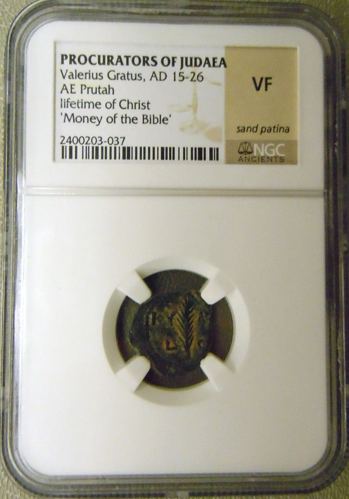 Left: Procurators of Judea ancient coin (A.D. 15-26), NGC VF.