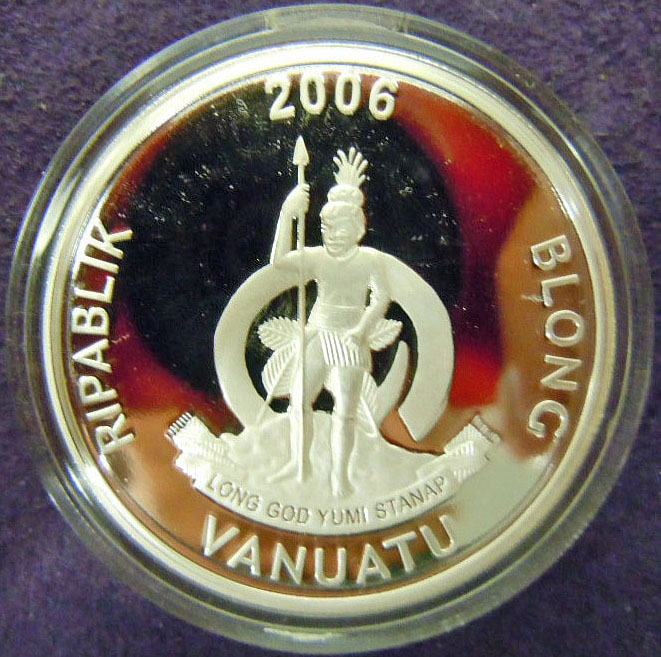 Right: 2006 Vanuatu 10 Vatu coin with colorized butterfly.