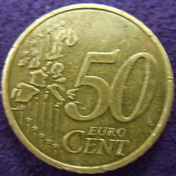 Right: 2003 50 Euro Cent coin.