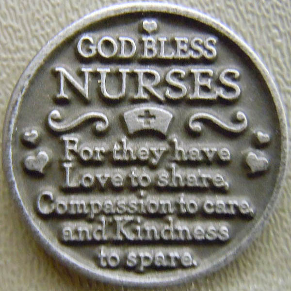 Left: God Bless Nurses medallion.