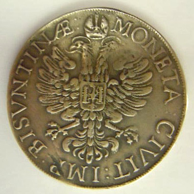 Left: Copy or forgery of 1658 European coin depicting Carolus (King Charles).
