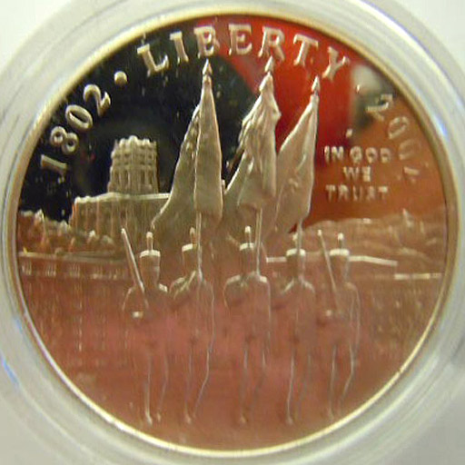 Right: 1802-2002 West Point Bicentennial commemorative silver dollar.
