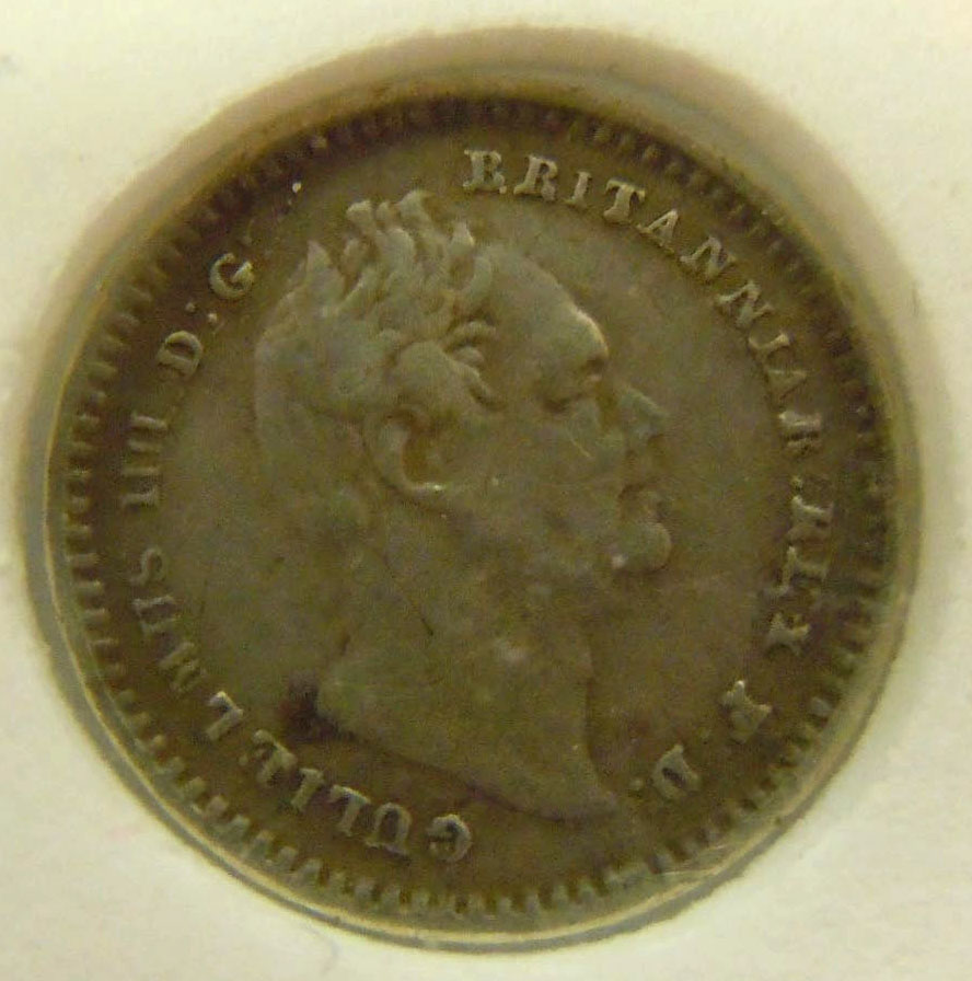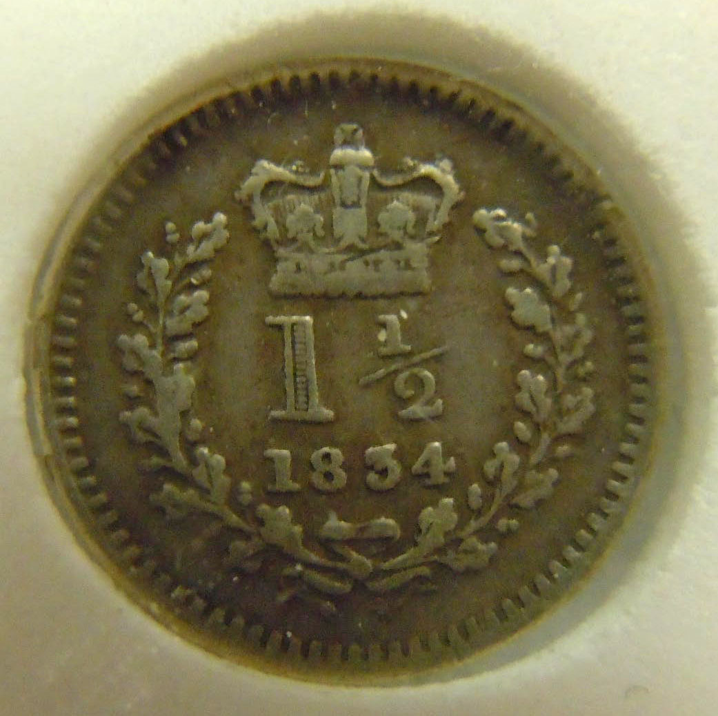 Left: 1834 Great Britain William IV 1-1/2 pence coin (KM# 719).