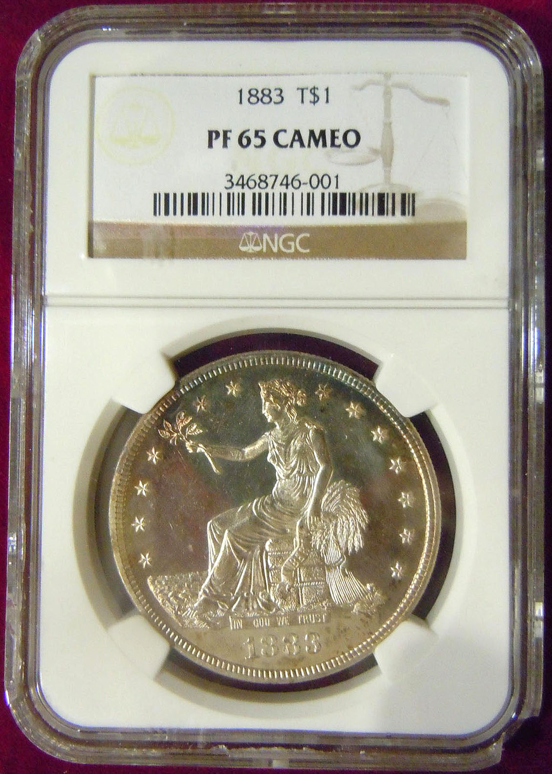 Left: 1883 Trade Dollar, NGC PF 65 Cameo.