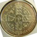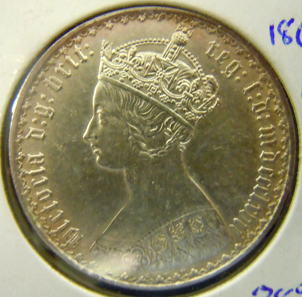 Left: Richard III grout (British medieval coin). Center: 1980 Queen Mother British commemorative coin. Right: 1867 Victoria Florin (British coin, 2 shillings or 1/10 pound).