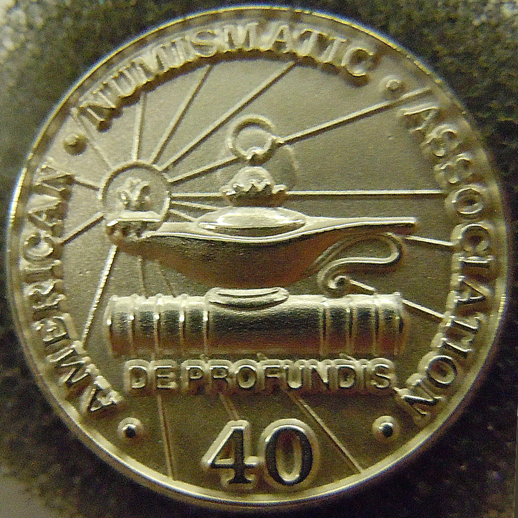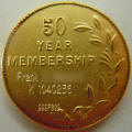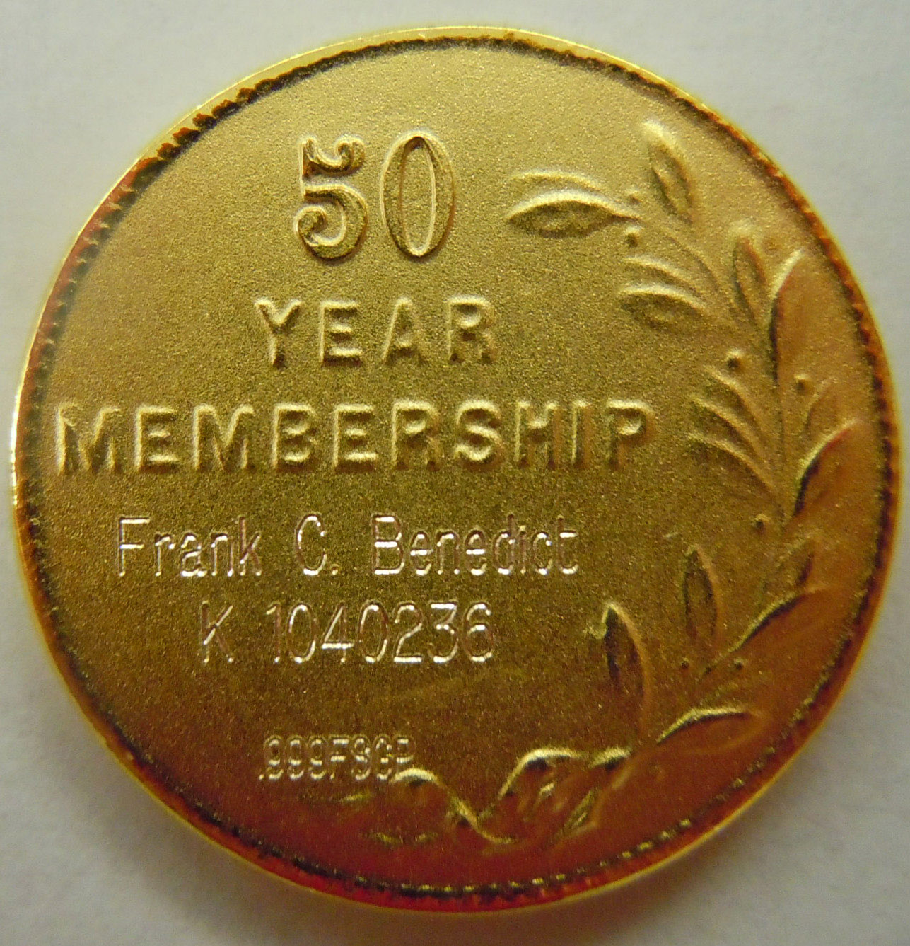 Frank B. and his ANA 40-year membership pin and 50-year membership medal (last name blurred).