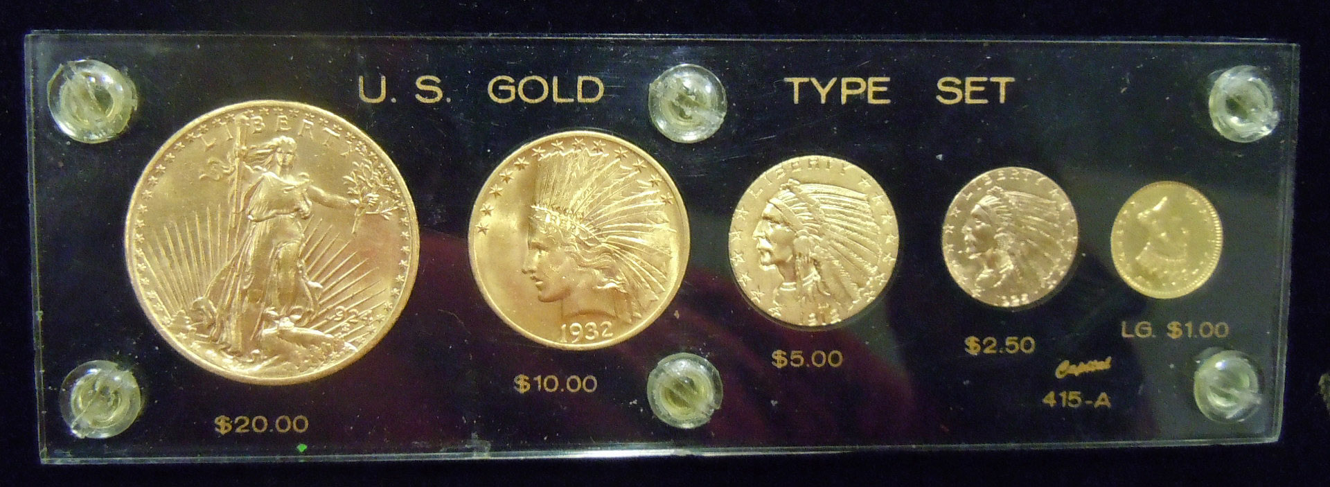 U.S. gold coin type set ($1, $2.50, $5, $10 and $20).