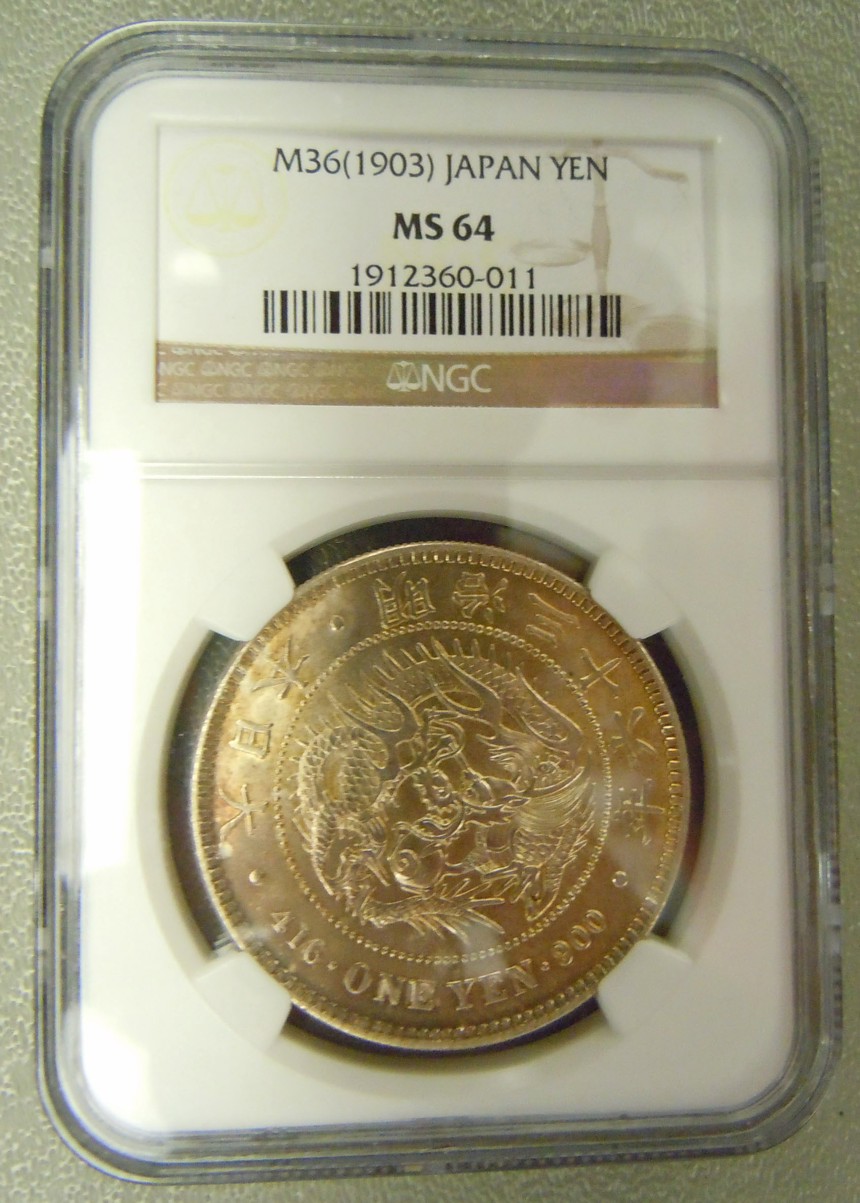 Left Center: 1903 Japanese yen coin, NGC MS 64.