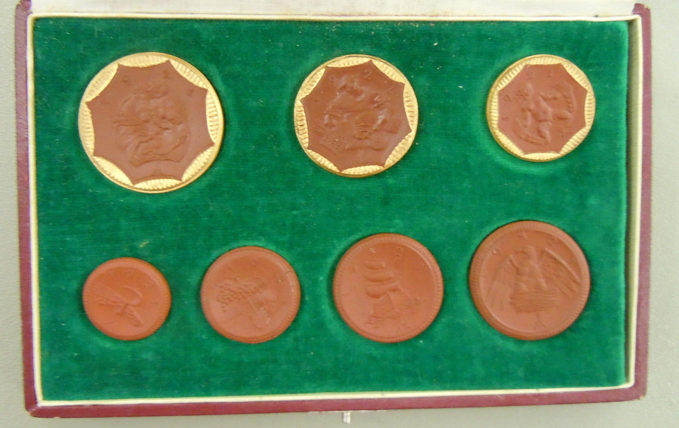 Center: 1922 German porcelain notgeld set.