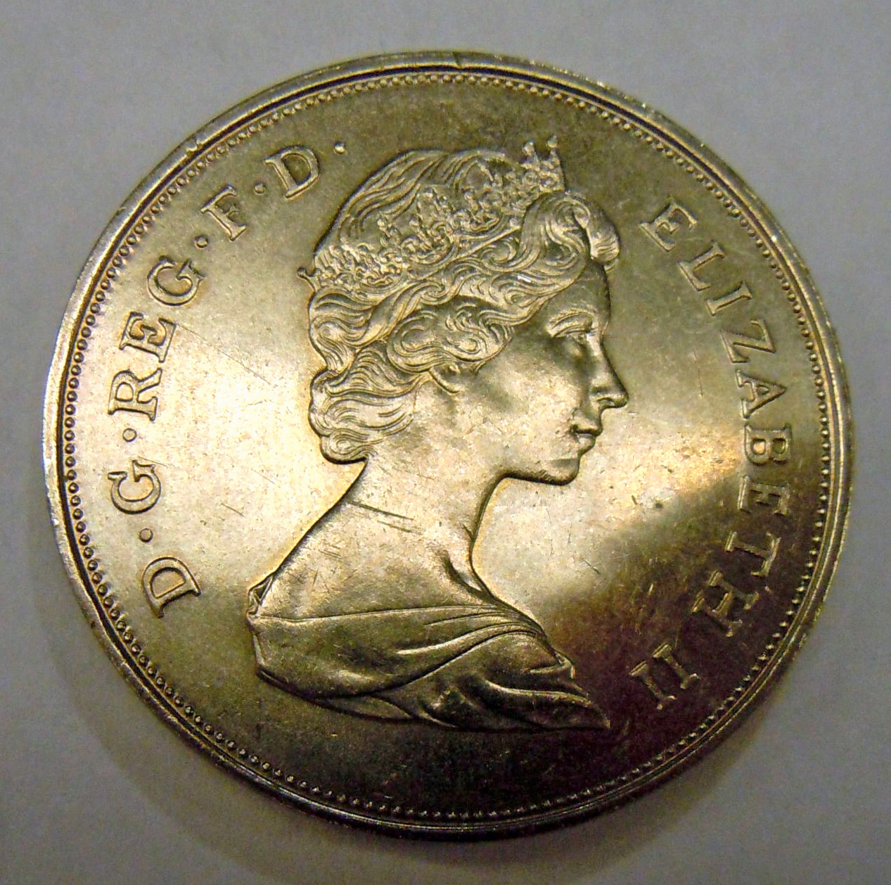 Center: 1965 United Kingdom (Great Britain) Churchill crown.