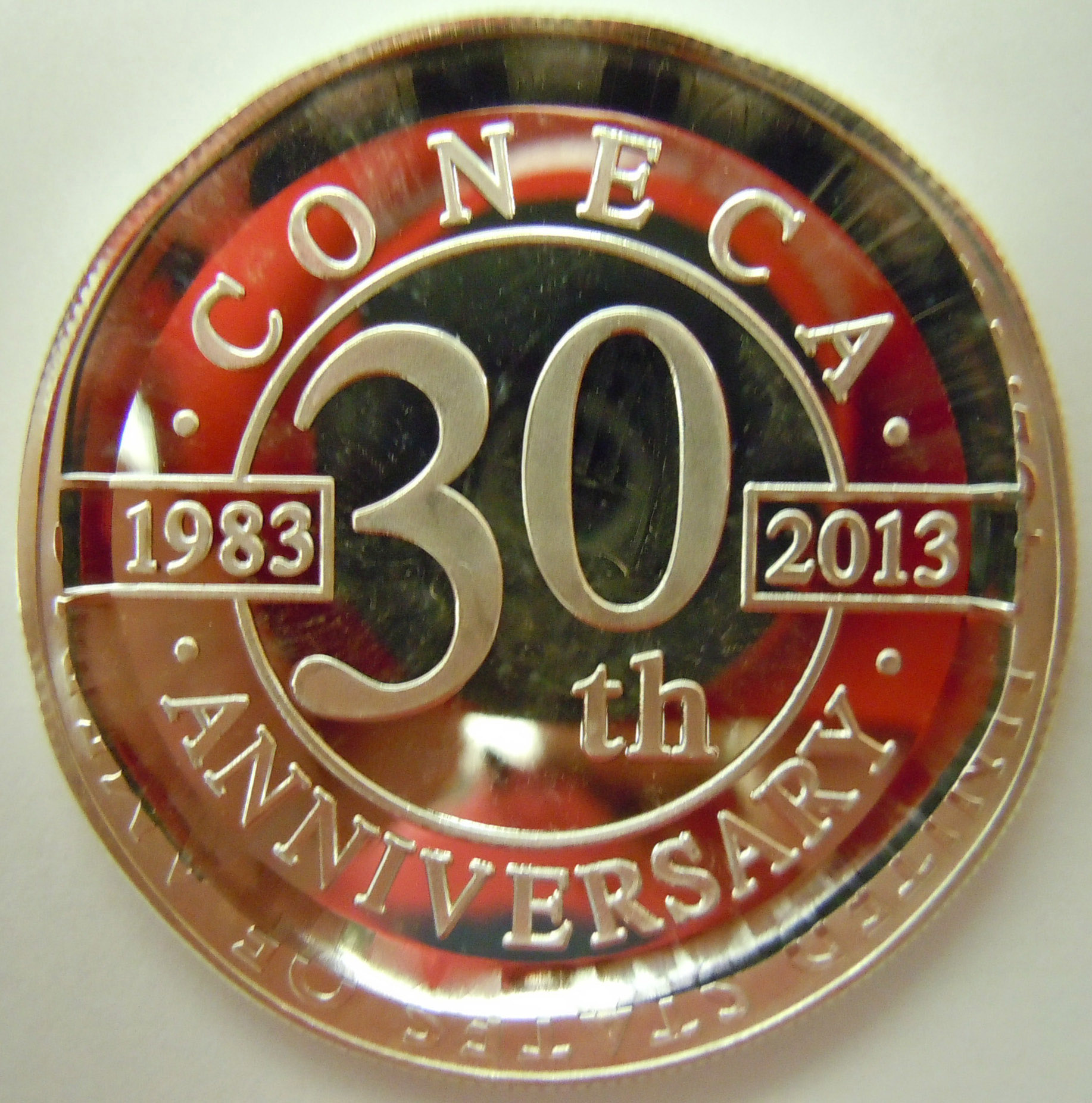 30th anniversary commemorative overstruck on a 2013 U.S. Silver Eagle.