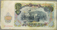 Bulgaria 100 and 200 Leva banknotes dated 1951. Catalog numbers Pick 86 and 87.