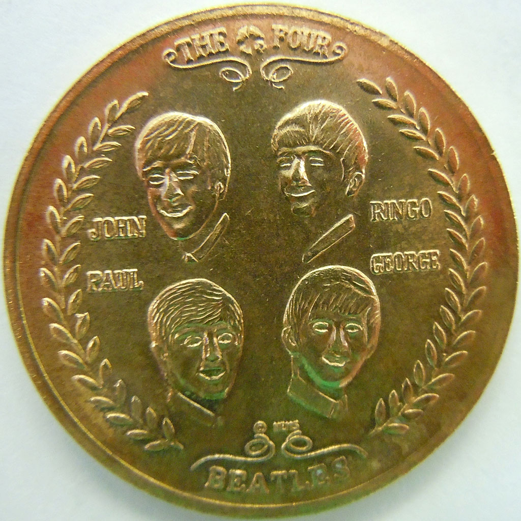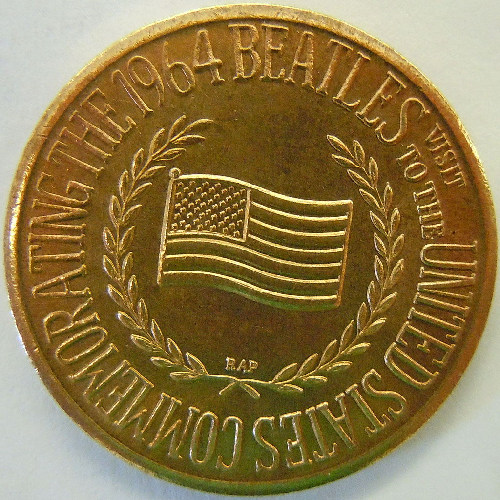 Left: 1964 Beatles visit to the U.S. commemorative medal.