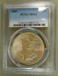 Right: "1885" PCGS certified Morgan Dollar that's really an 1886!