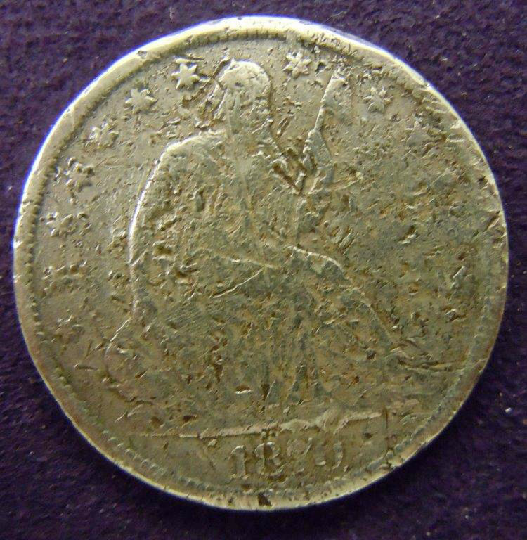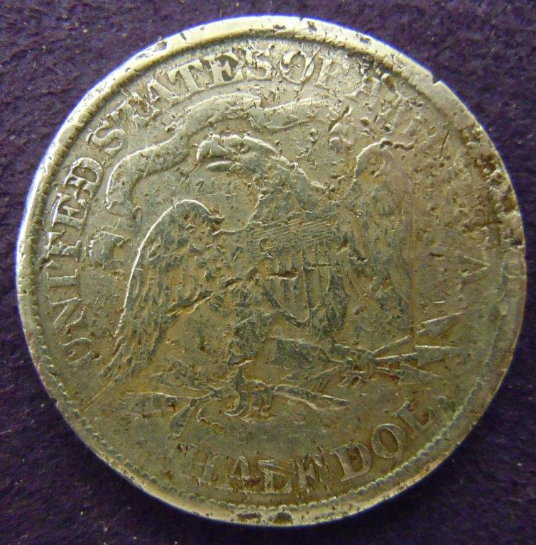 Left: 1870 Liberty Seated Half Dollar in poor damaged condition. Right: Mike's "Roadkill" collection!