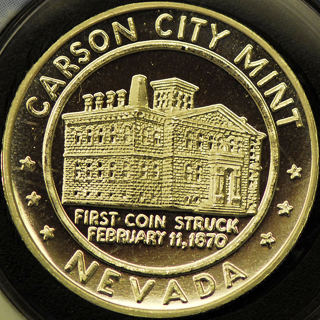 Nevada Sesquicentennial medal struck on the original Carson City Mint coin press.