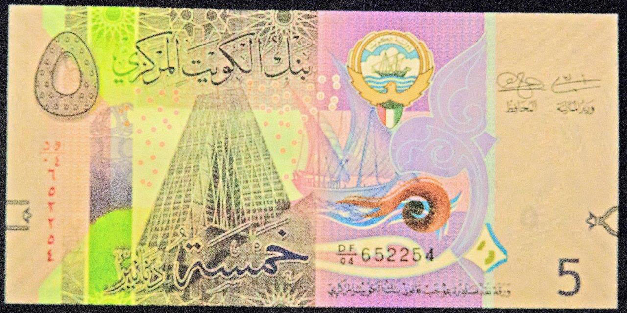 Top: Kuwait 1/4 Dinar banknote. Bottom: Kuwait 5 Dinars banknote.