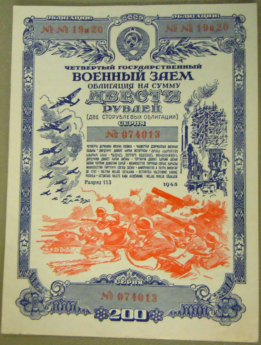 Right: 1945 Soviet War Bond.