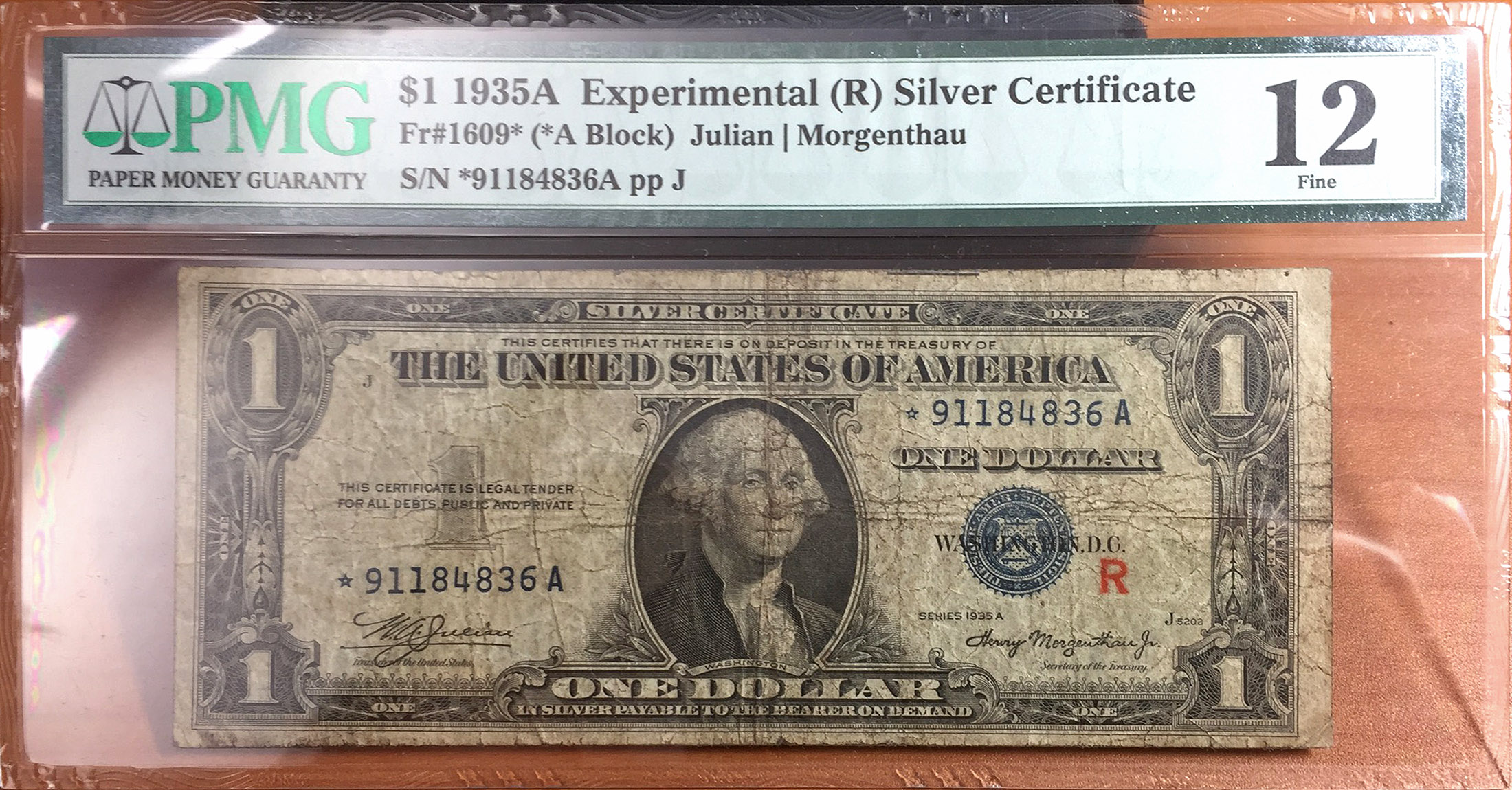 $1 1935A Experimental (R) Silver Certificate star note, Fr#1609*.
