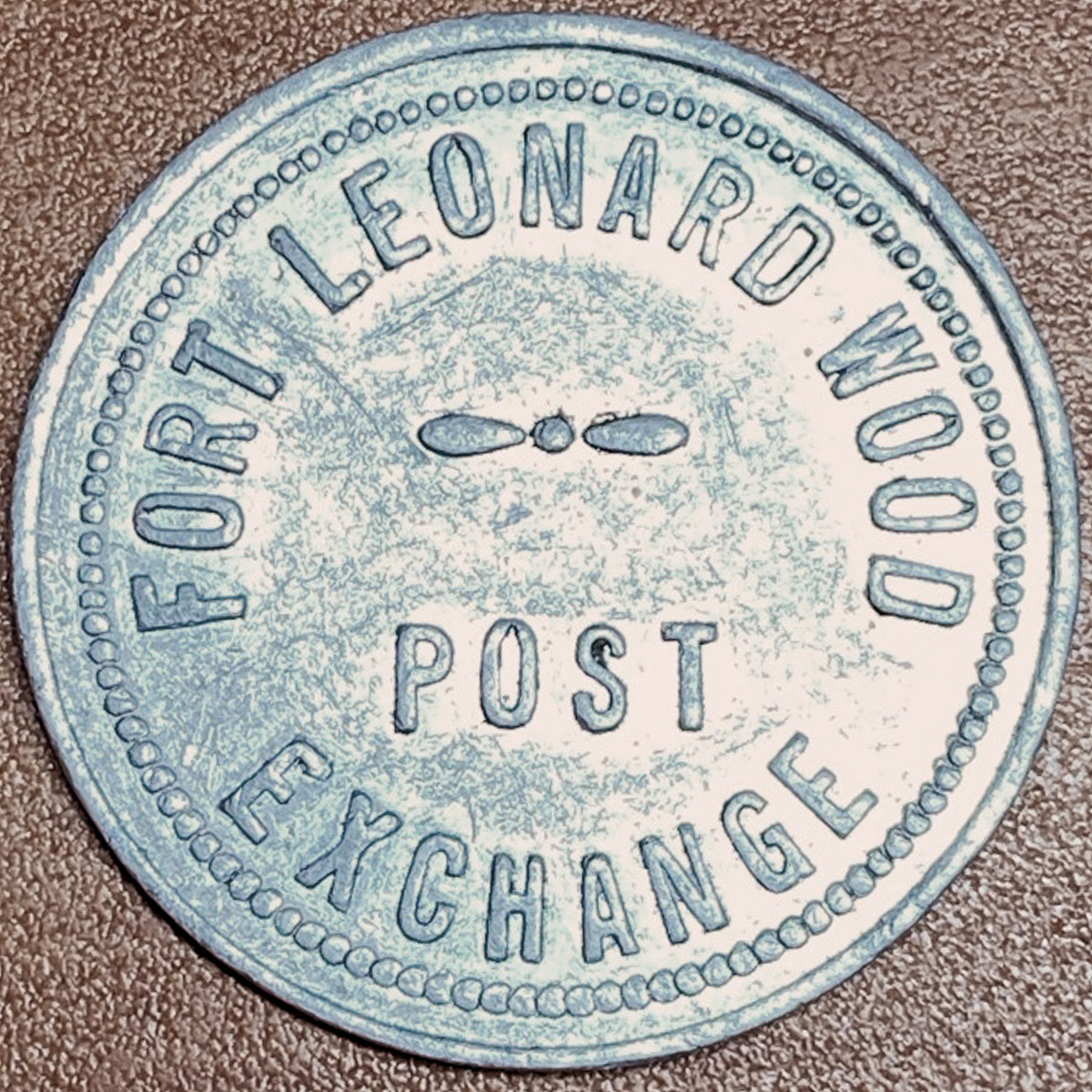 Left: Fort Leonard Wood Post Exchange 5-cent bottle return token. According to wikipedia,