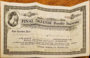 Right: Final Defense Royalty Interests certificate, Texas American Syndicate, dated August 26, 1927,