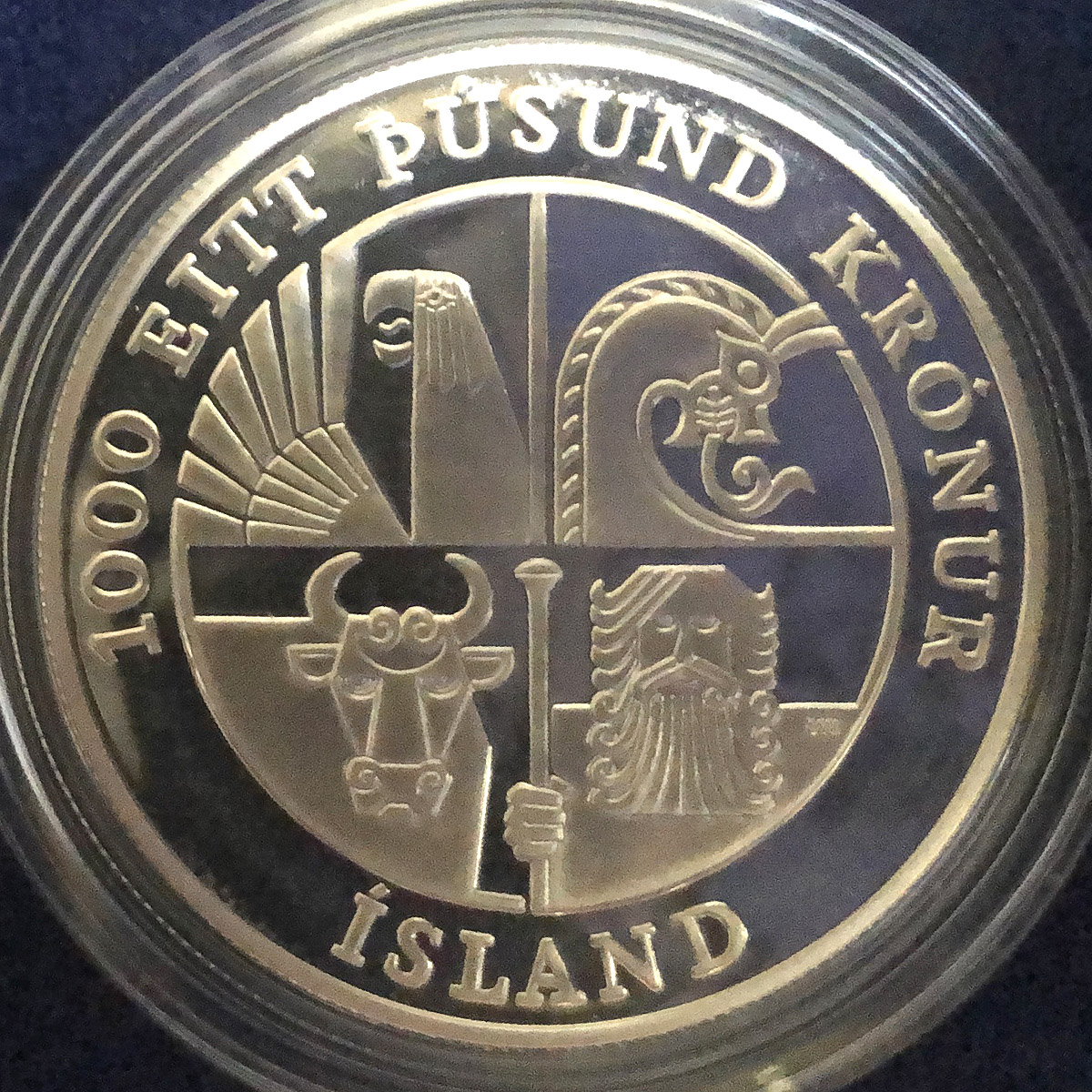 Right: 2000-dated Iceland 1000 Kronur coin commemorating the Leif Ericsson Millennium. These were struck at the