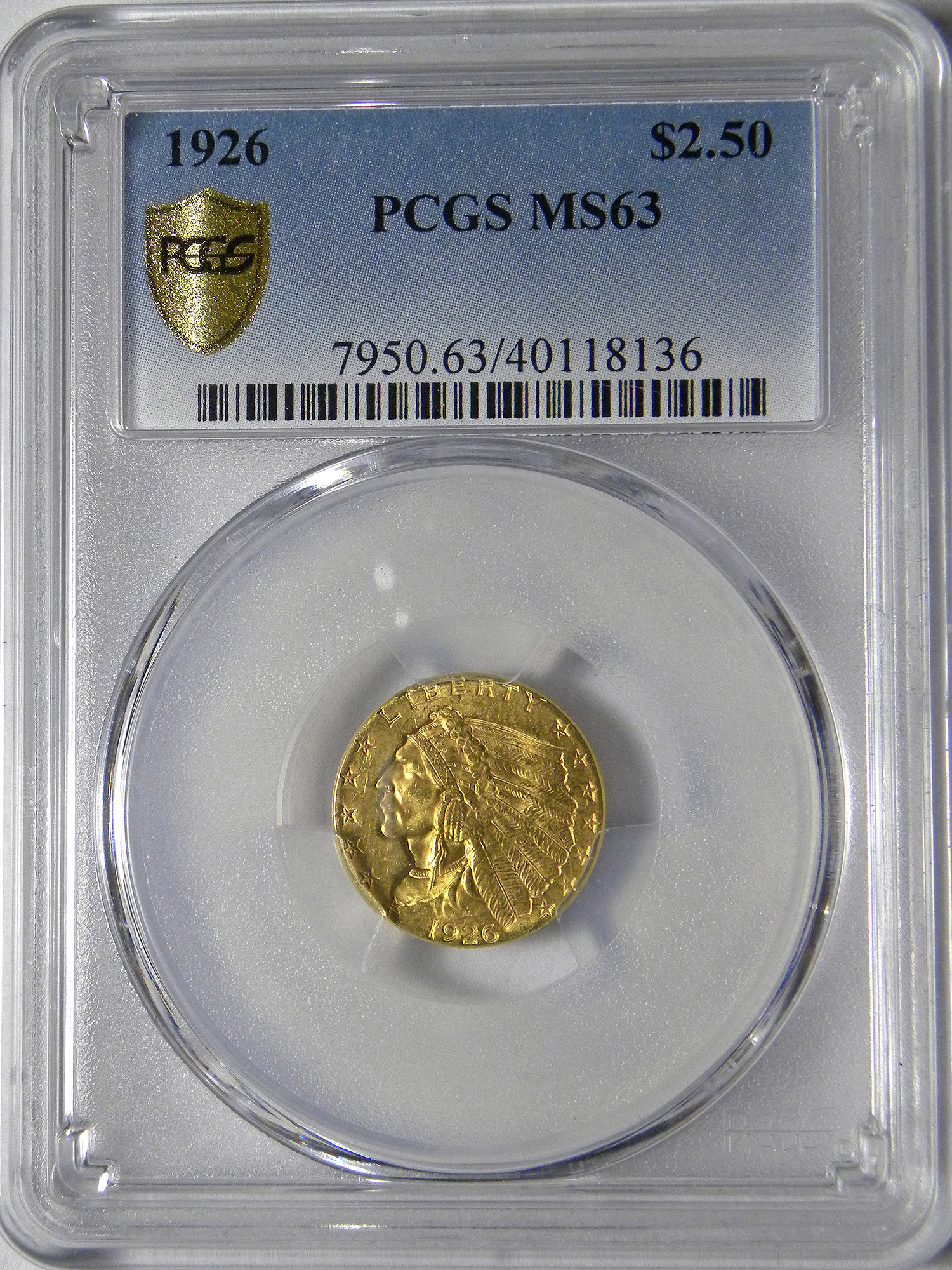 1926 $2.50 gold Quarter Eagle, PCGS MS63.
